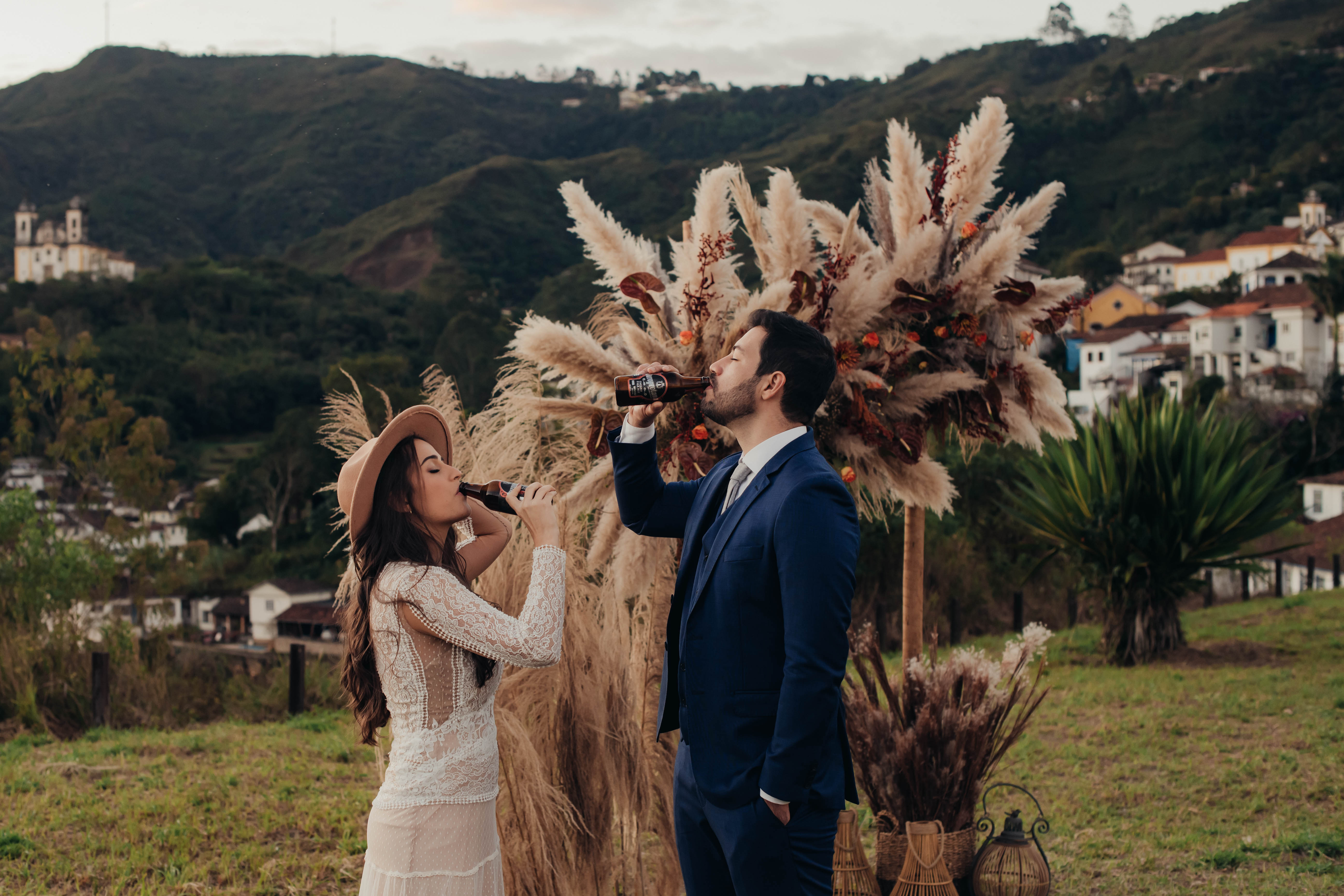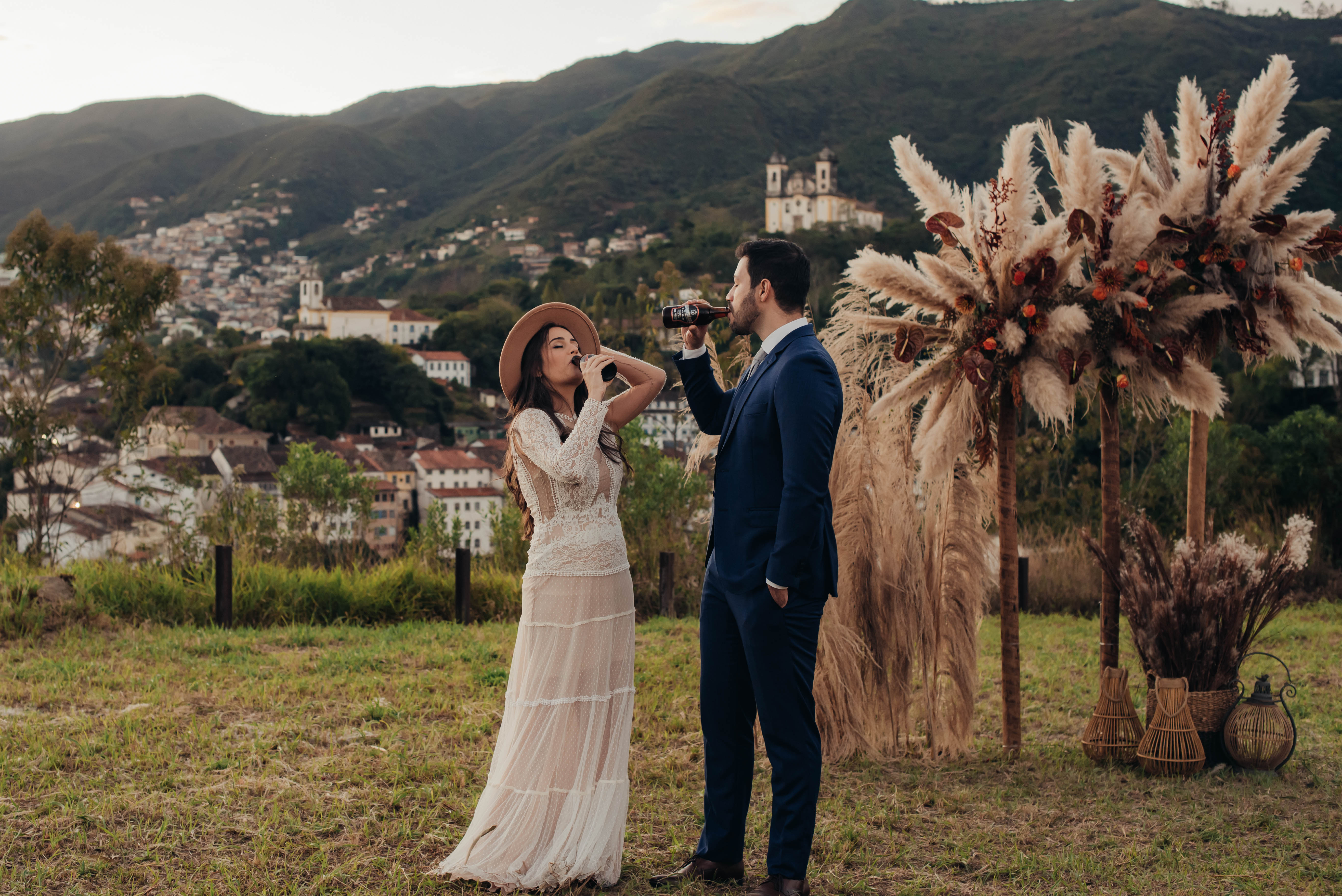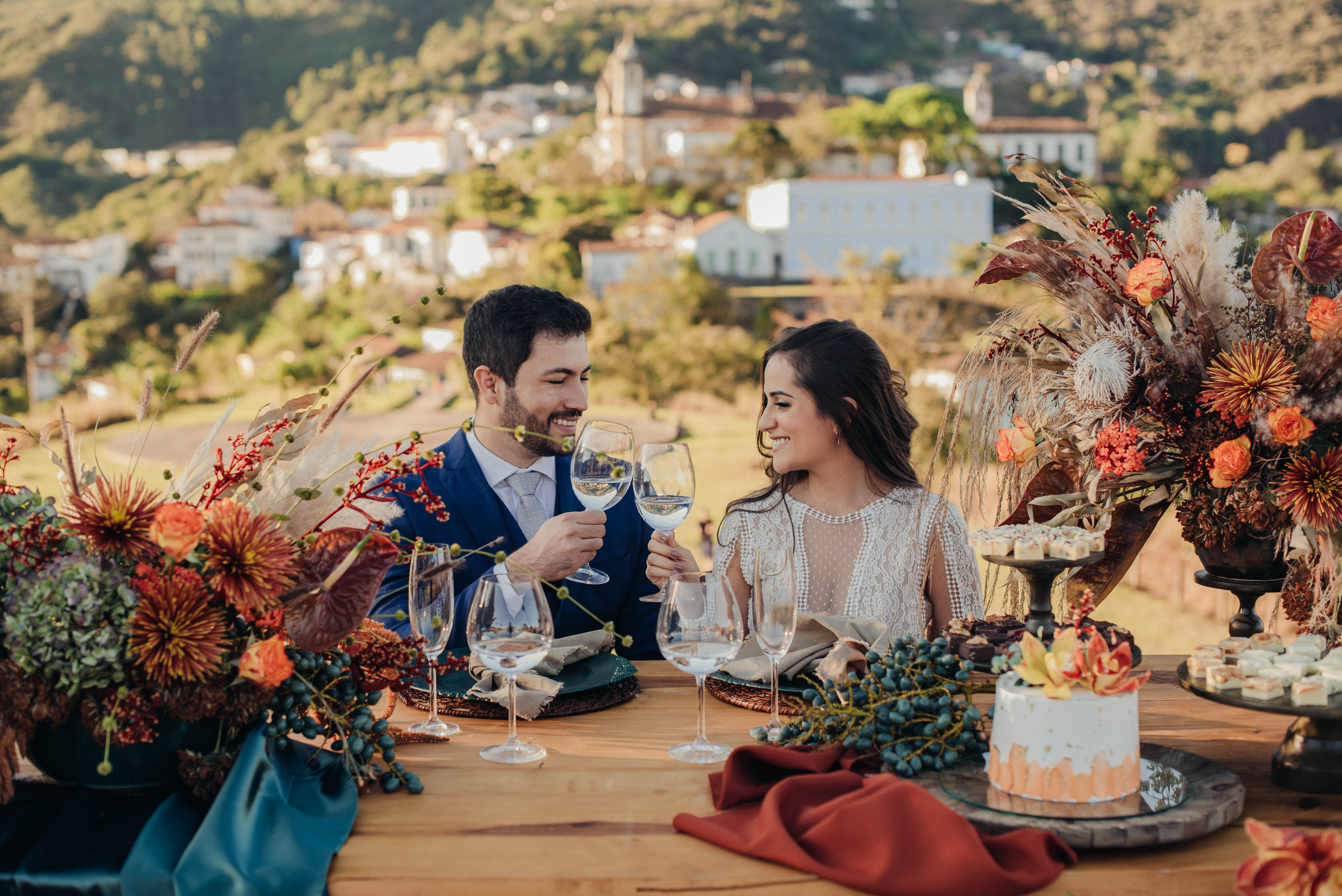 Inicialmente a ideia seria fazer algo em um hotel ou restaurante legal de Ouro Preto, a cidade que eles sempre gostaram de passear, e seria mais intimista mesmo, com poucas pessoas. Mas dada as circunstâncias, foi melhor optar por um espaço aberto e apenas com o casal!