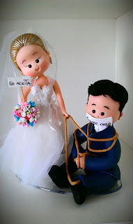 Esse negócio de organizar casamento é mesmo cheio de detalhes! Hoje vou mostrar alguns exemplos de um detalhe super fofo: O topo de bolo.