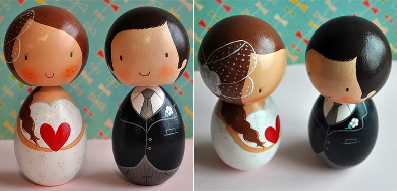Esse negócio de organizar casamento é mesmo cheio de detalhes! Hoje vou mostrar alguns exemplos de um detalhe super fofo: O topo de bolo.