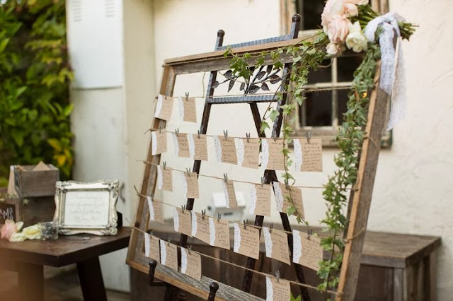Acho um charme pendurar fotos e mensagens! Ao invés de usar um livro de mensagens tradicional em seu casamento, pendure as mensagens em cartõezinhos difenciados, como com detalhes a laser, rendinhas, sempre combinando com a identidade visual da sua festas de casamento.