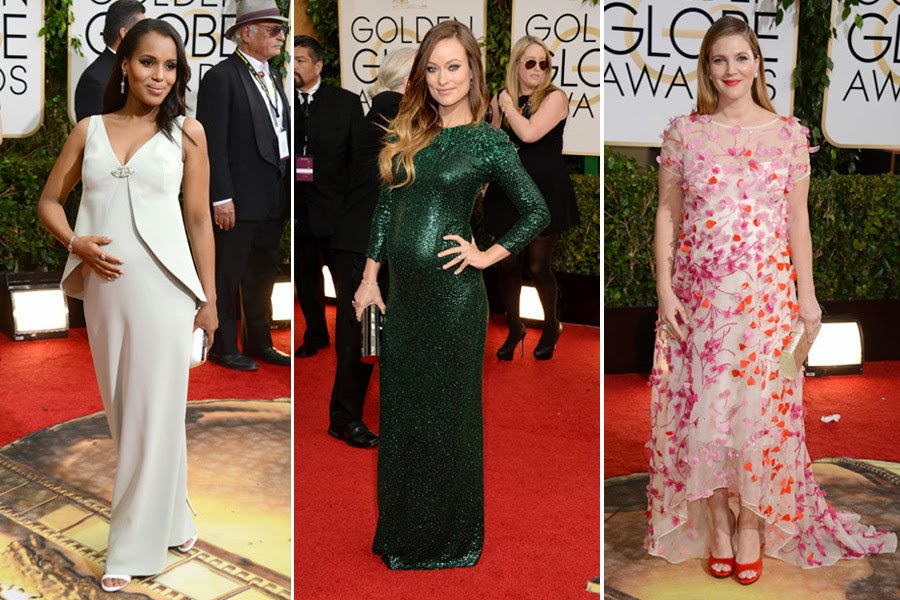 Acima três looks das atrizes bem gravidinhas, Kerry Washington que vestiu Balenciaga, Olivia Wilde que vestiu Gucci e Drew Barrymore, que usou Monique Lhuillier no Red Carpet do Golden Globe 2014 em Los Angeles neste domingo.