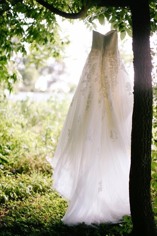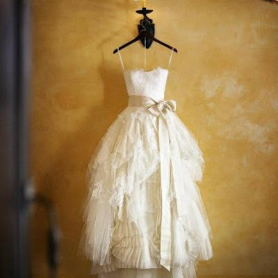 O vestido pode ter apenas um detalhe de renda no corpo, ou na saia, ou nos ombros…
