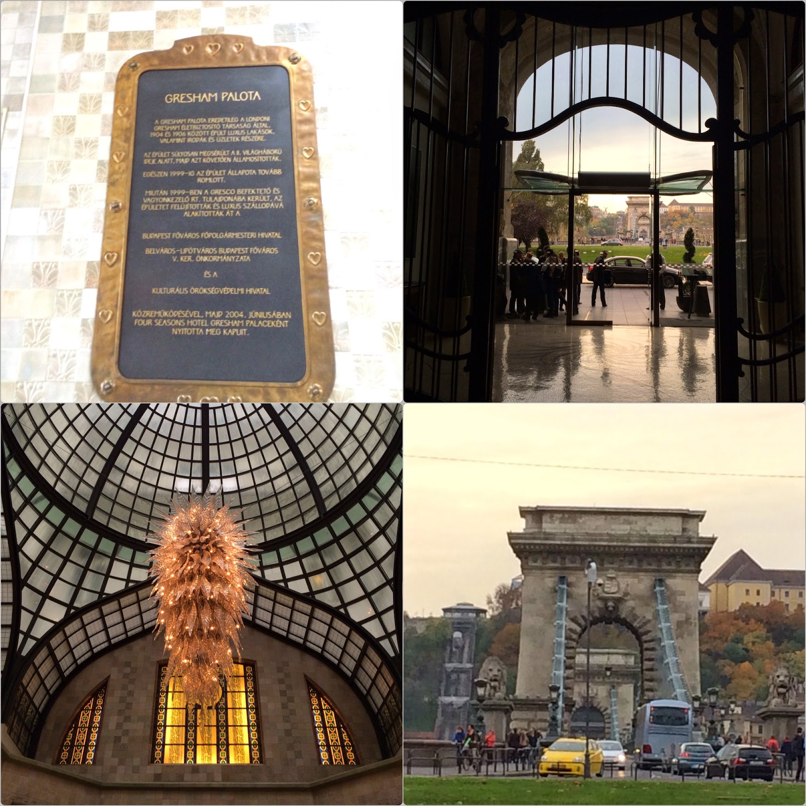 Ficamos hospedados no Gresham Palace, bandeira Four Season, super bem localizado e um exemplo de arquitetura Art Noveau, construido no séc 19.