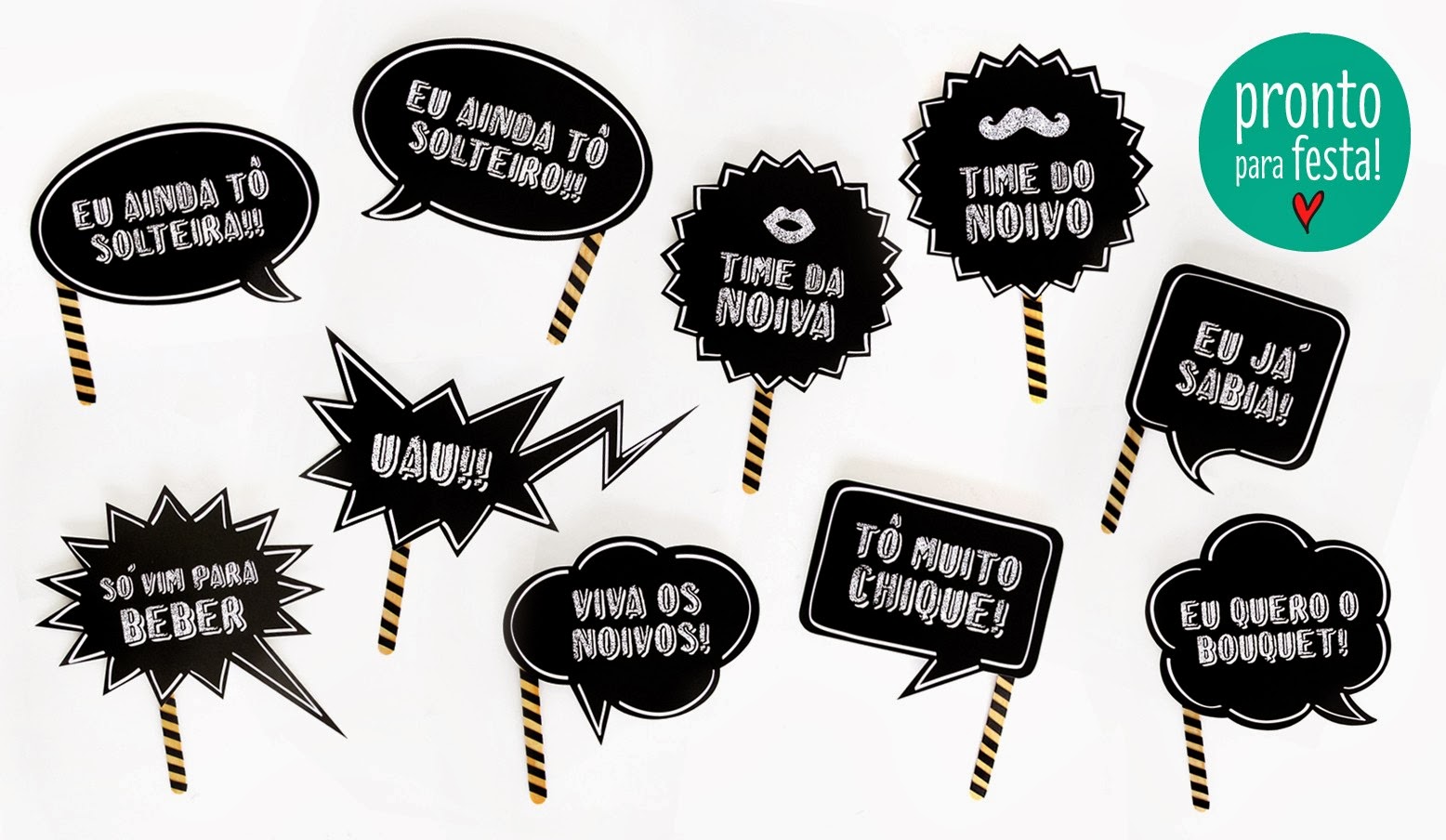 | bocas, óculos, chapéu, bigode, nariz de palhaço, gravatas e tudo o que sua criatividade permitir |